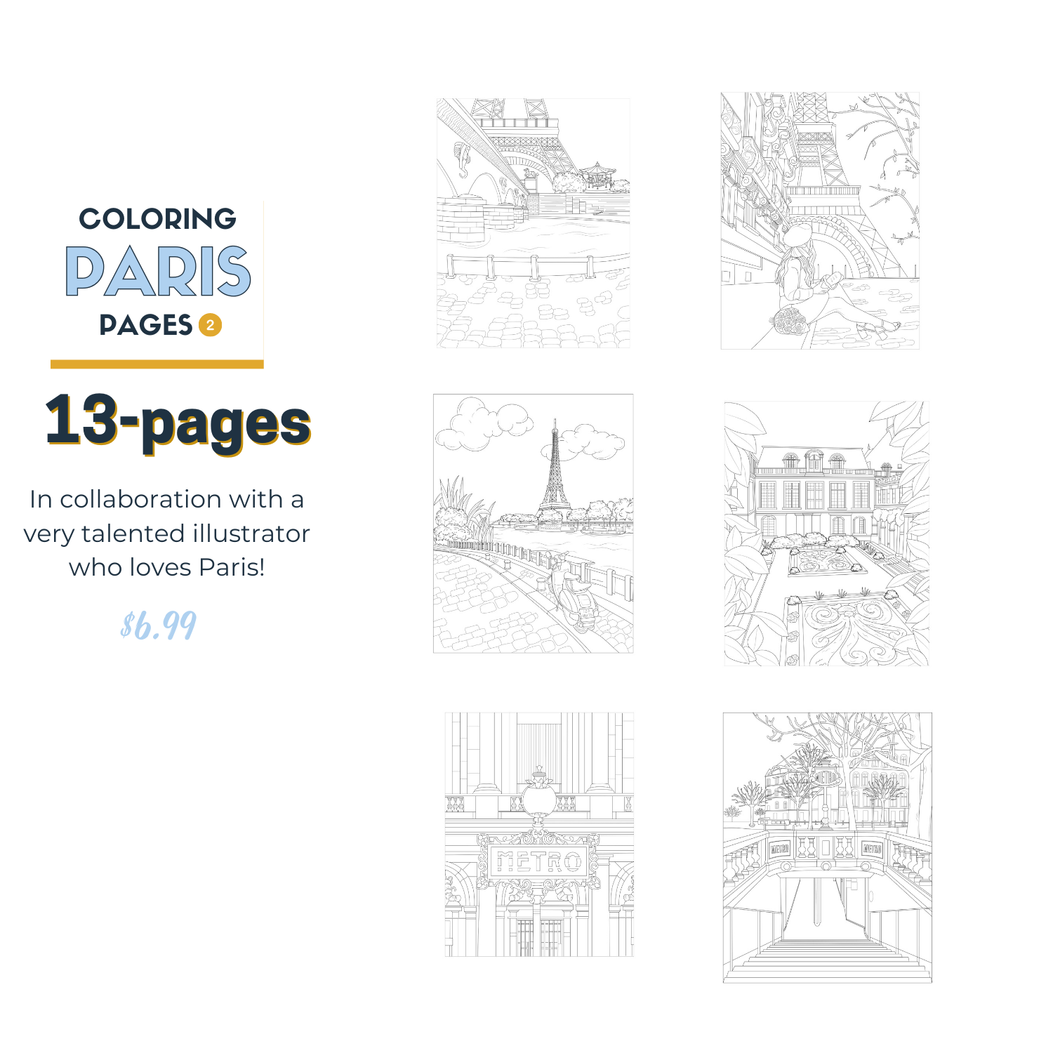 Paris Coloring Pages Edition 2: 13 Paris-themed coloring sheets! (See full description below)